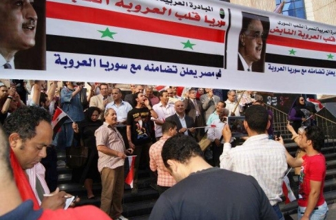 وكان نظم عدد من الاحزاب المعارضة المنتمين للتيار اليساري والقومي نظموا وقفة احتجاجية مساء اليوم أمام نقابة الصحفيين للتأكيد على دعمهم لنظام بشار الأسد،والتنديد بالمعارضة السورية متهمين المعارضة بأنها سعدت عندما شنت إسرائيل غارتها وضربت أهداف سورية، كما اتهموا الإعلام بالتضليل وأنه يحاول إظهار بشار كسفاح والمعارضة بالشريفة.